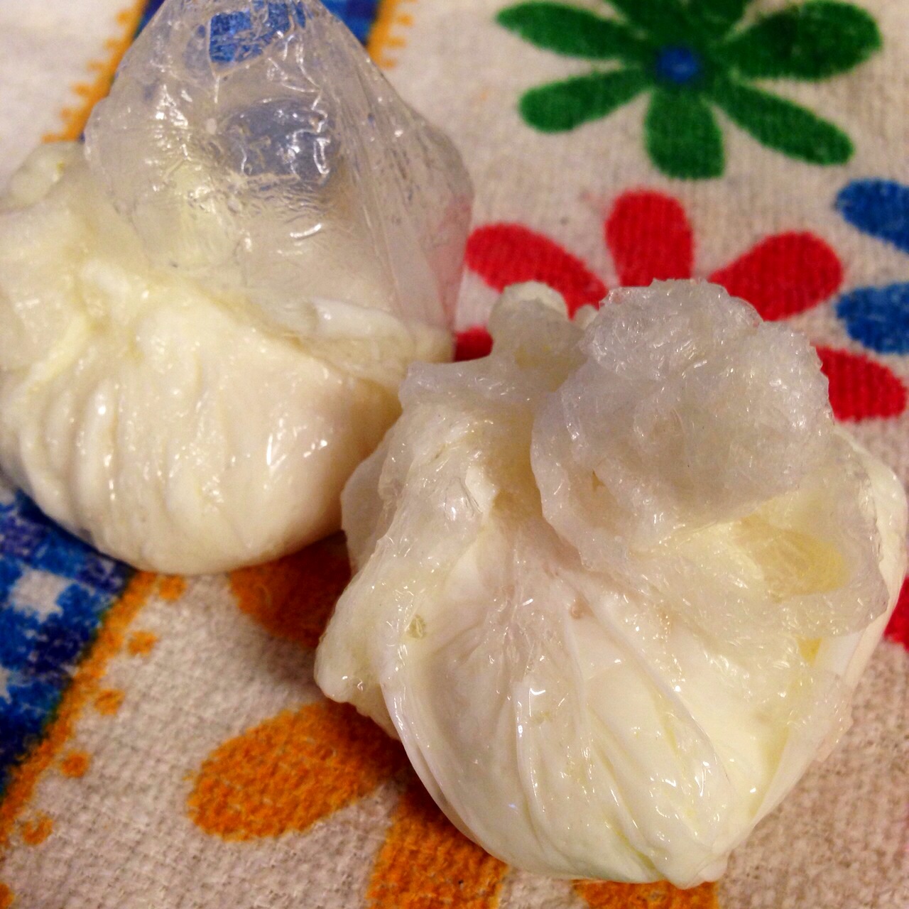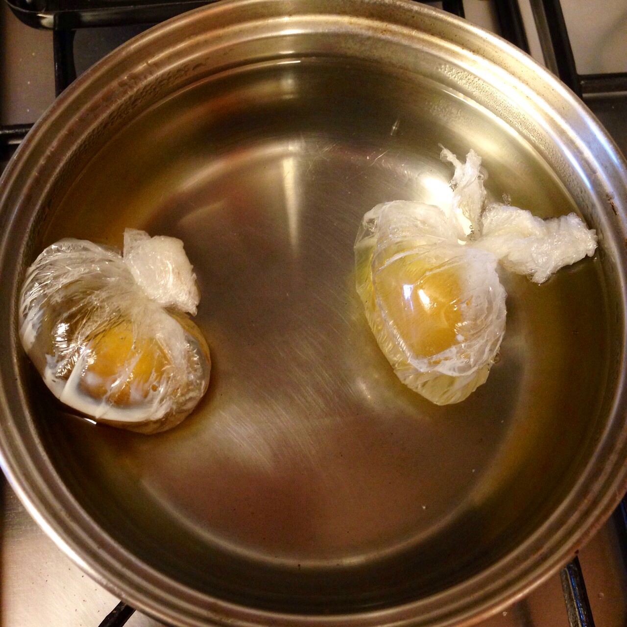 El huevo dentro del plástico y cerramos bien como en un saquito.