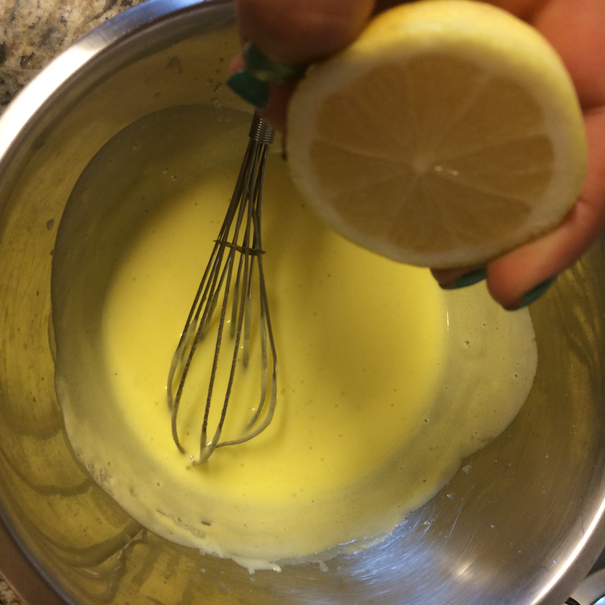 Esa cremosa salsa amarilla que hay que hacer con mucho cuidado y paciencia para que no se corte. (La receta del huevo pochado fácil la encuentran en otro post del blog)