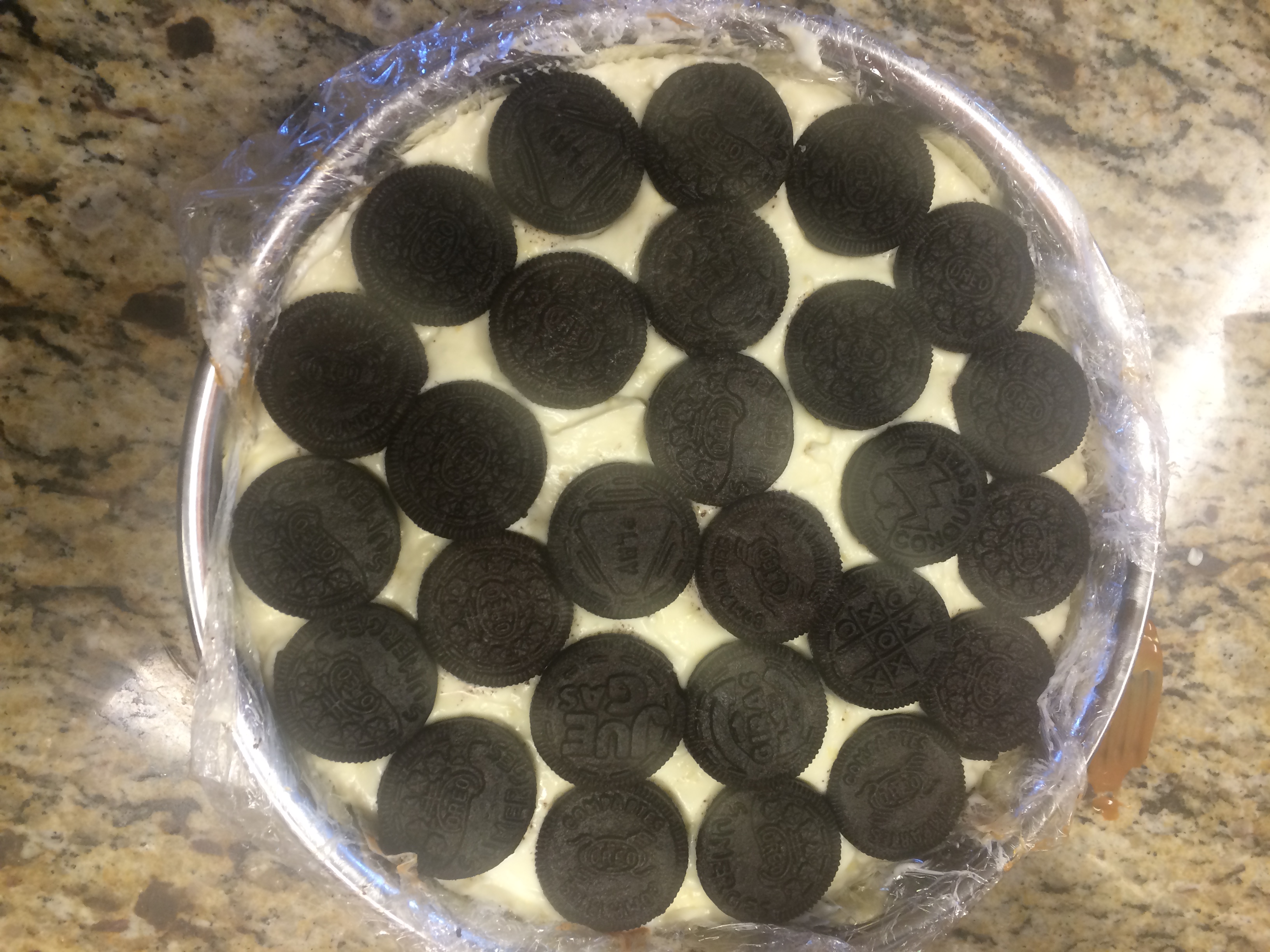 - Agregamos una capa contundente de la crema de queso y esparcimos por encima de las galletas.