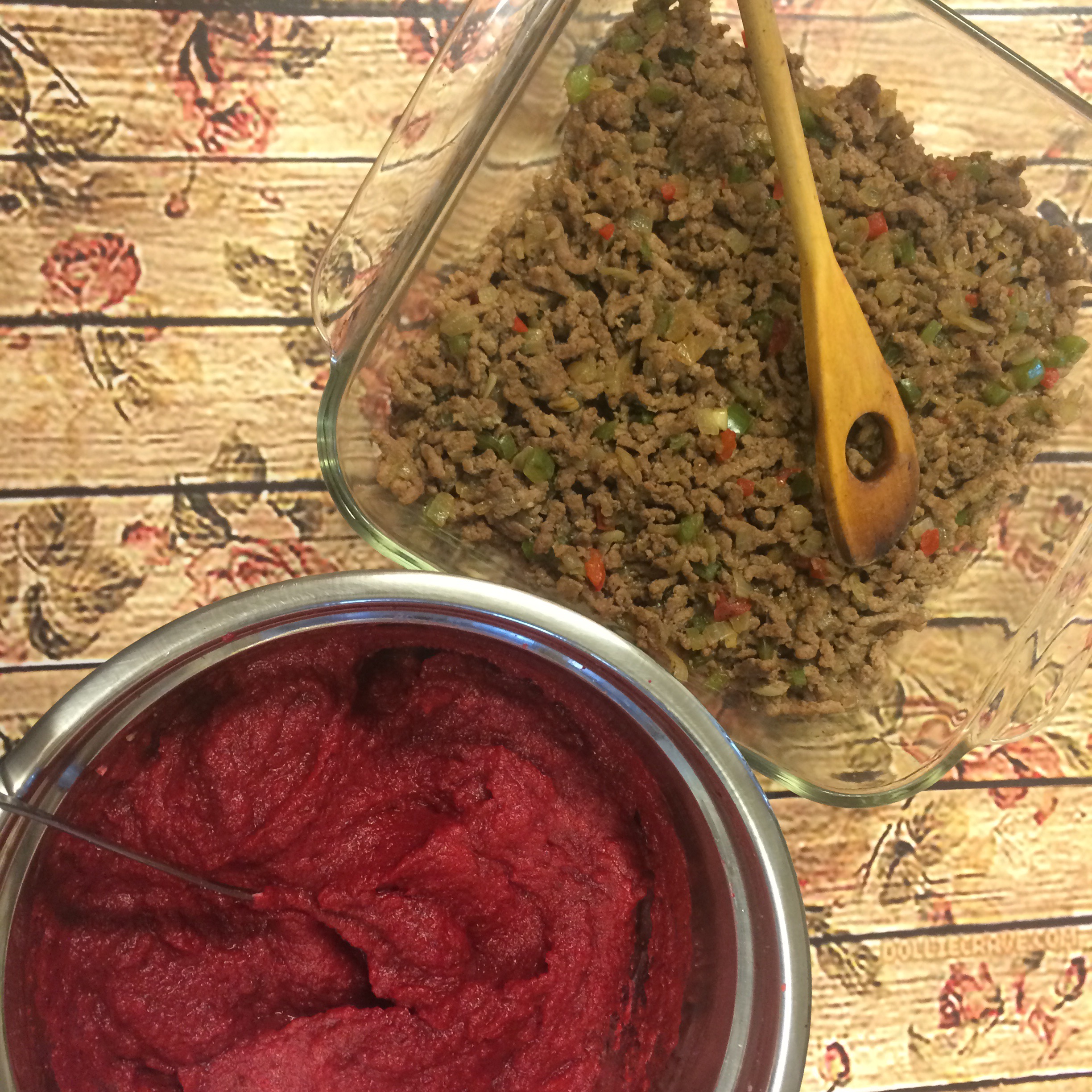 - Cubrir con nuestro puré de betarraga y coliflor.
