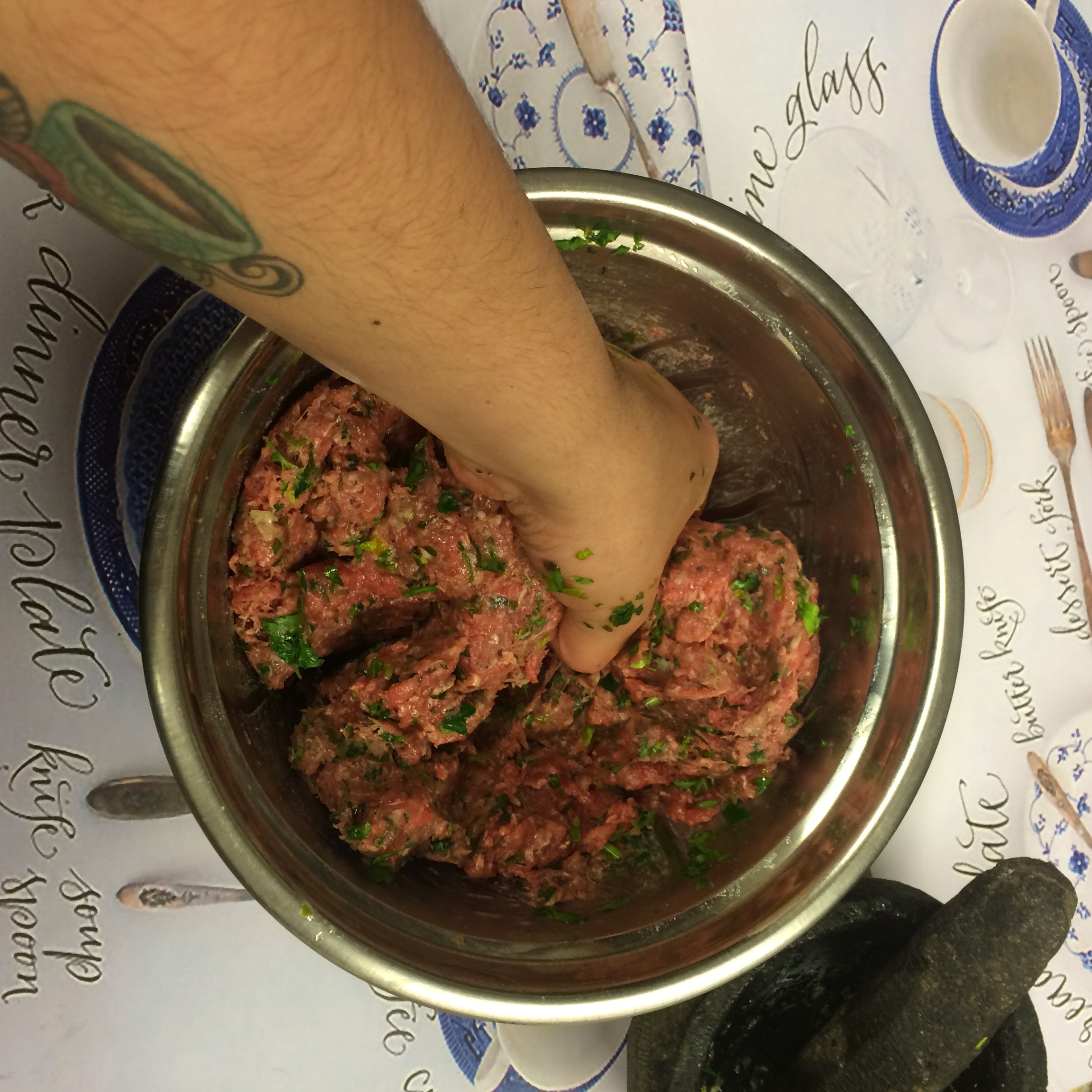 - Agregamos el ajo y el perejil picado y amasamos de nuevo