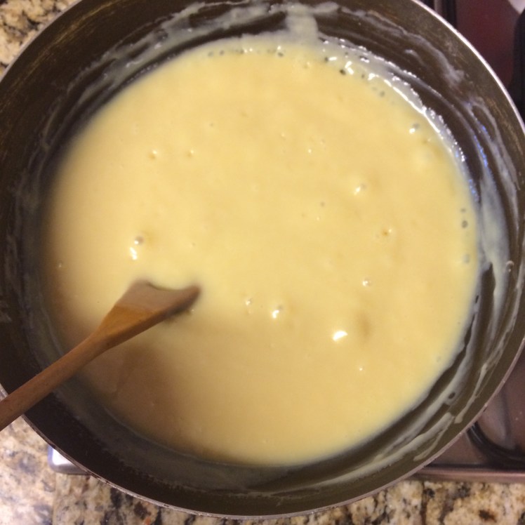 - Siempre revolviendo con una cuchara de palo para que no se nos queme, esta «crema» debe tomar un color café.