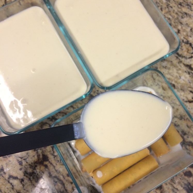 3. Agregamos por encima la salsa blanca hasta cubrirlos completamente. Deben estar cubiertos para que la cocción sea adecuada.