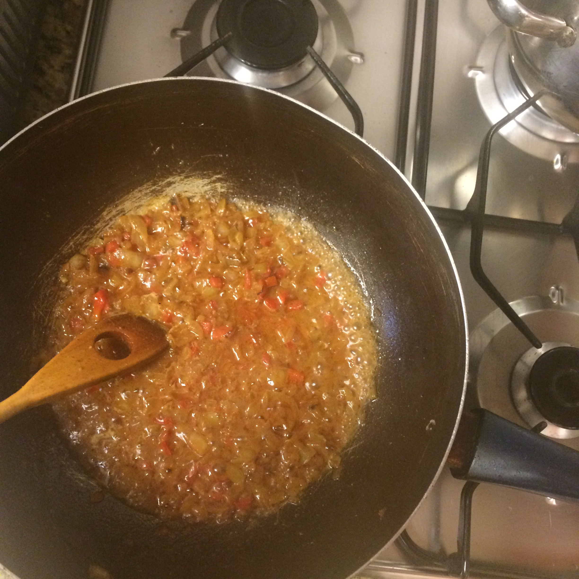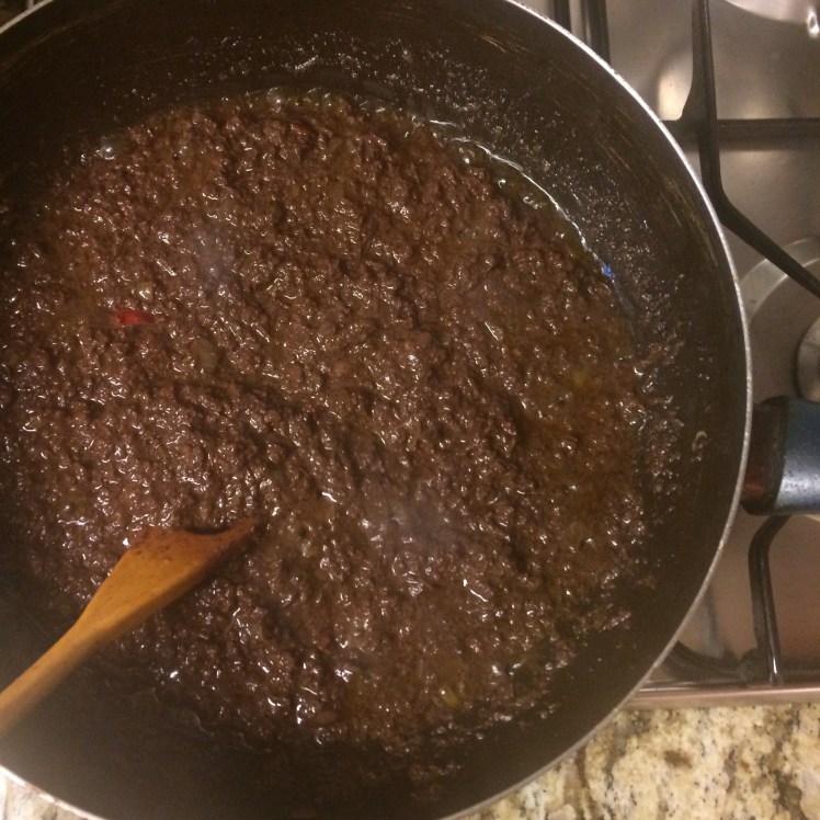 4. Agregamos 100 cc de caldo de carne o verduras y dejamos cocinar 5 minutos más.